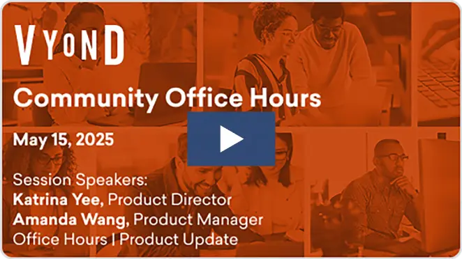 Q&A’s, how-to’s, product updates, and more. Get the inside-Vyond scoop with Office Hours.